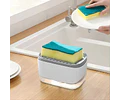 Práctico y eficiente: Este dispensador 2 en 1 combina almacenamiento y funcionalidad, permitiendo lavar los platos con facilidad. Incluye un soporte integrado para esponjas y una capacidad de 12.5 oz que evita recargas frecuentes. Su diseño racional mantiene el fregadero limpio, y su base antideslizante brinda estabilidad. Ideal para optimizar tiempo y espacio en la cocina.
