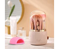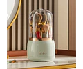 Almacenador giratorio para brochas con tapa, disponible en colores blanco, rosado y verde. Su diseño elegante y funcional permite organizar de manera ordenada y accesible tus brochas y utensilios de maquillaje. Con un giro suave, puedes acceder fácilmente a tus brochas, manteniéndolas protegidas y libres de polvo. Perfecto para mantener tu espacio de maquillaje limpio y ordenado.