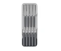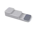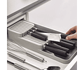 Este organizador está diseñado para ser compacto y práctico, con dos niveles que ayudan a ahorrar espacio. El nivel superior es adecuado para cuchillos pequeños, mientras que el nivel inferior puede albergar cuchillos grandes de hasta 9 pulgadas. Es una solución ideal para mantener tus cuchillos ordenados y fácilmente accesibles.